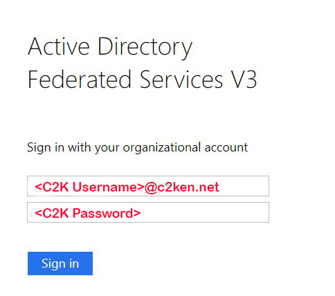 Log in using the following format shown in the image above - remember the @c2ken.net: